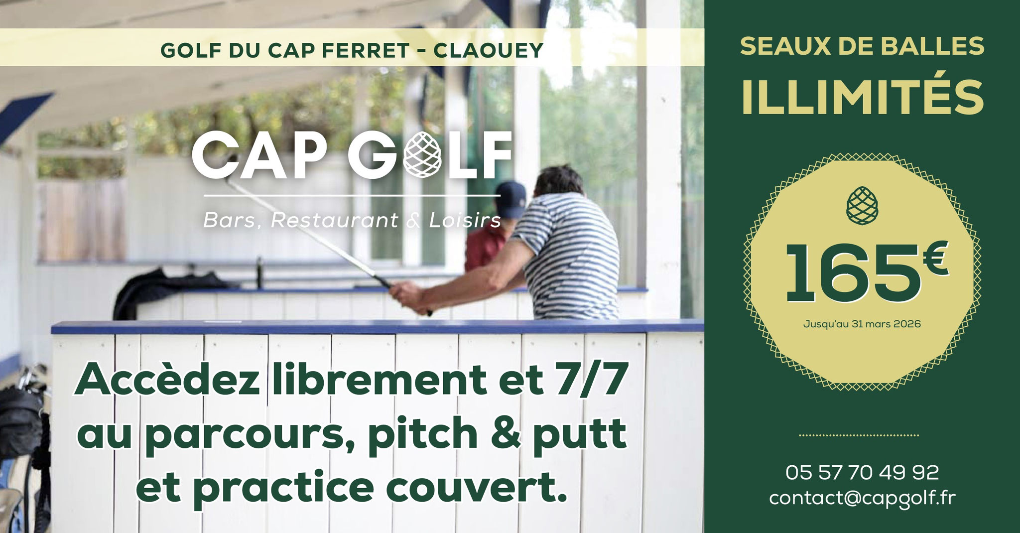 Du 1/10/25 au 31/3/26 Cap golf est ouvert 7/7 uniquement pour les adhérents au Pass Hiver.